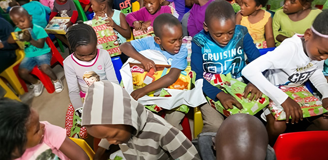 Houses with Hope provides Christmas parties to orphans during the month of December each year. These celebrations include presents, food and games.